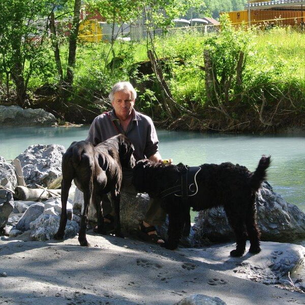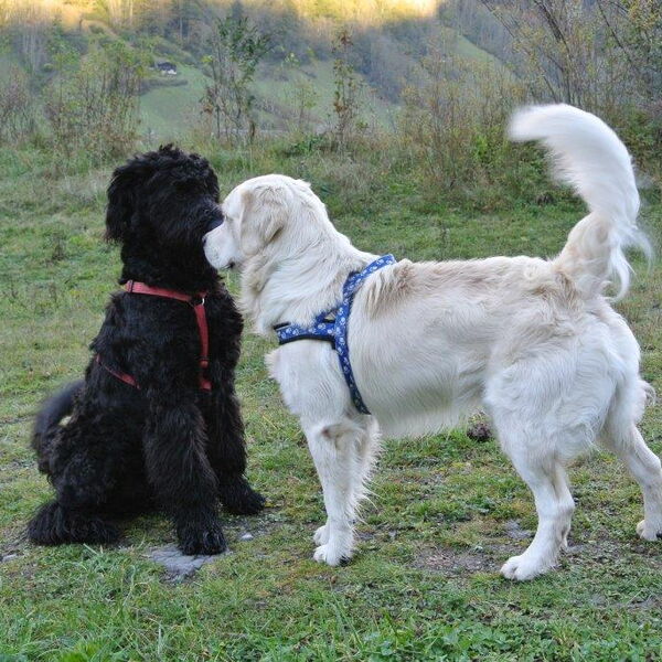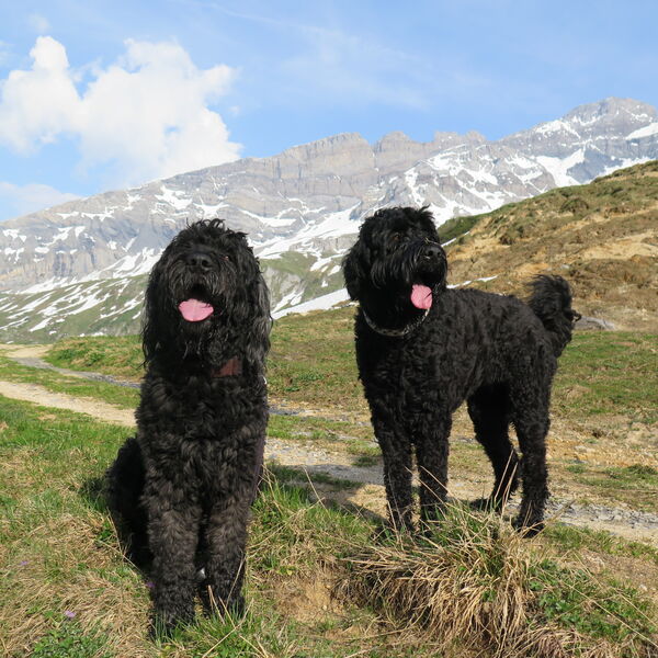 Und ich bin ein Schwarzer Russischer Terrier.