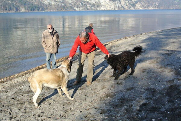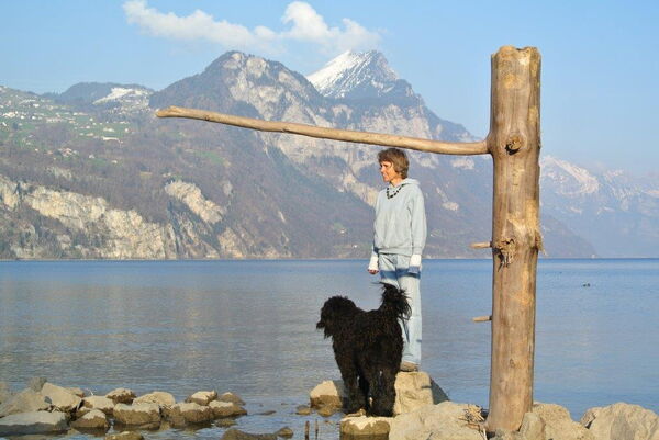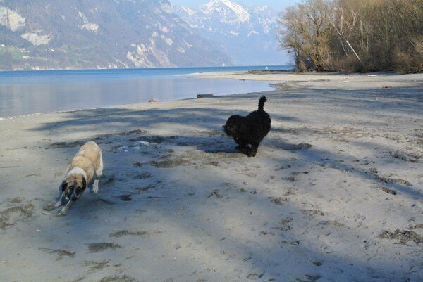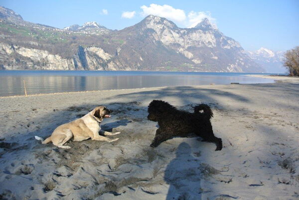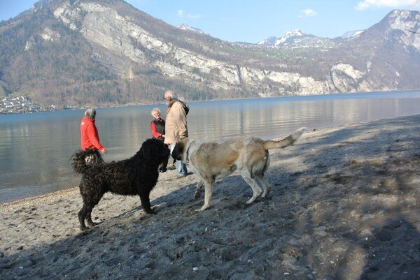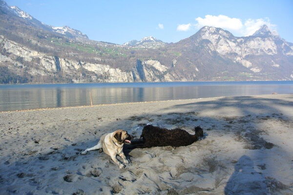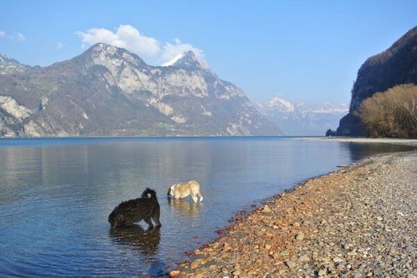Heute sind wir für die www.hilfsgüterzentrale.ch mit dem Anhänger unterwegs. Für mich legen Claudia und Hansjürg Extra-Stopps ein. Die liebe ich! Da gibt es immer viel Neues zu entdeckten. So war ich zum Beispiel noch nie auf einem Holzschnitzelhaufen. Das macht Spass! Und am Walensee haben wir Fero getroffen, ein Portugiesischer Herdenschutzhund. Ein neuer Freund von mir!