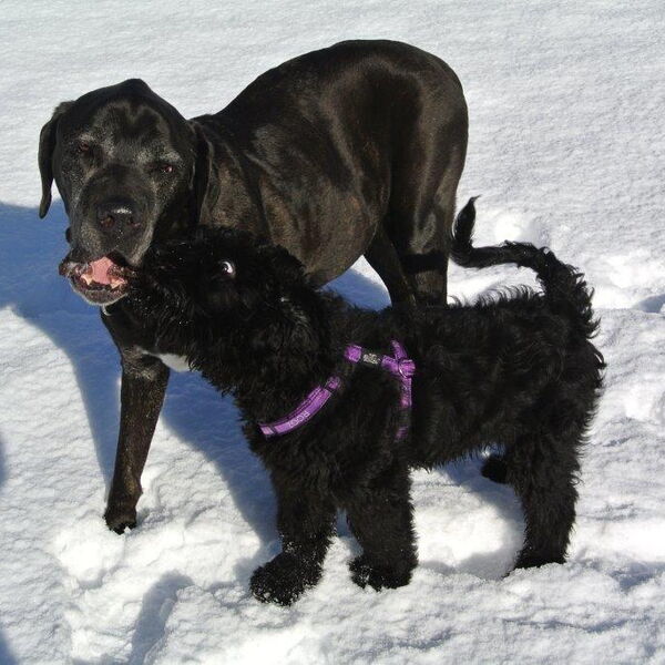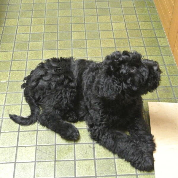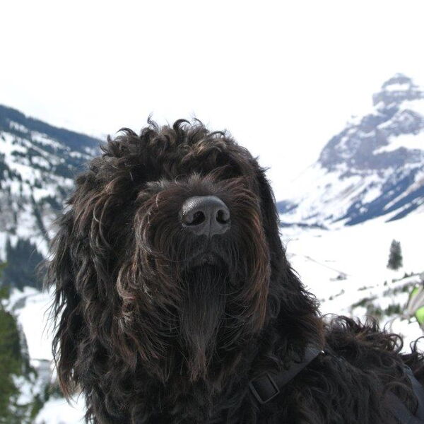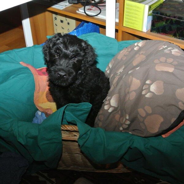 Und ich bin ein Schwarzer Russischer Terrier.