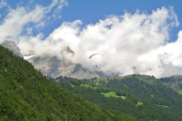 28. August 2014 Mein Chef mach heute einen Gleitschirmflug. Ich weiss von all dem nichts. Aber ich darf ihn beim Landeplatz begrüssen! Da freut er sich bestimmt.